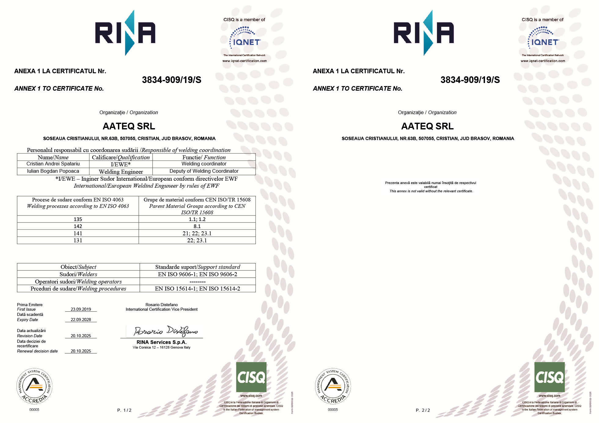 Qualität ist und bleibt für uns seit der Firmengründung der wichtigste Aspekt. Deshalb kommt der Qualitätsabteilung bei Aateq eine Schlüsselrolle zu. Unser Team besteht aus 10 Mitarbeitern, die alle über eine sehr gute Ausbildung auf diesem Gebiet verfügen. Sie stellen ständig sicher, dass die verarbeiteten Teile den höchsten zertifizierten Standards in Rumänien, Belgien und der EU entsprechen.
