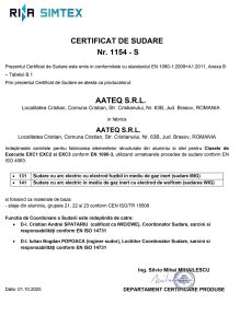 Omologarea proceselor de fabricatie revine in atributiile managerului de calitate. Rapoartele initiale si finale de masuratori sunt realizate pe coloane verticale 2D si pe masina CNC de masurat in coordonate 3D.