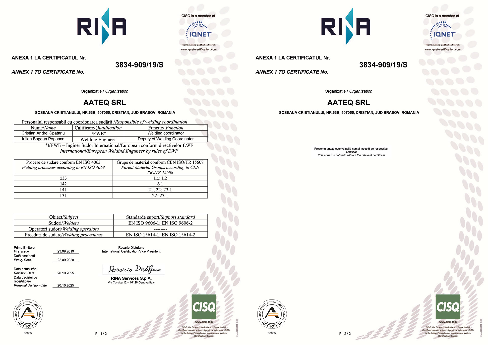 Viziunea Aateq este simpla, dar puternica: sa cream ansamble metalice exceptionale care sa depaseasca asteptarile clientilor nostri.